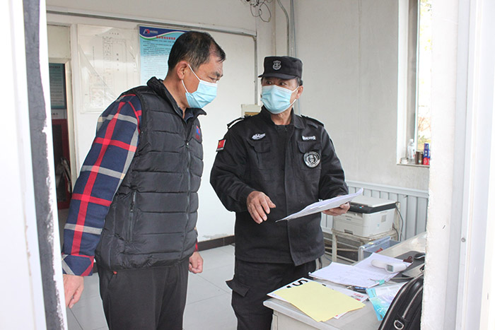 因工作需要往返二厂、三厂的人员,值班保安都会认真查看工作证,耐心叮嘱戴口罩,途中不要去其他地方,避免接触其他人员。