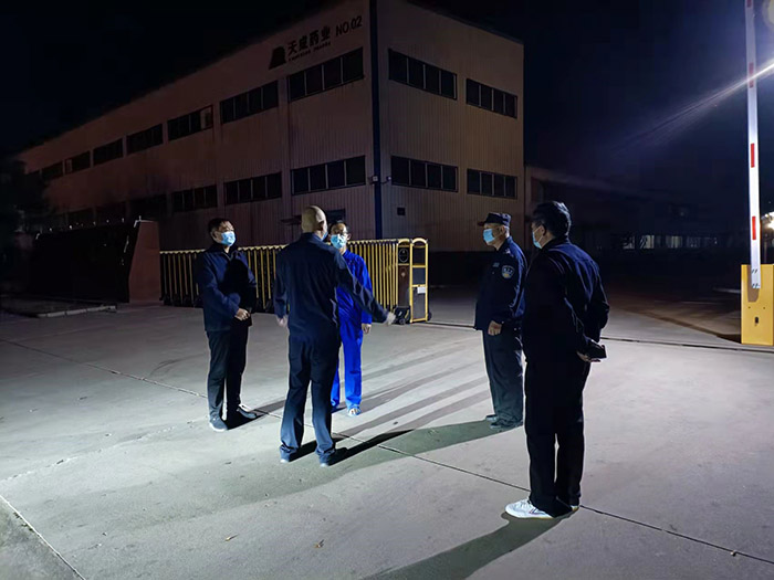 常务副总经理王颢作为此次封控管理的总指挥,更是多次强调生产生活安全问题。他在安监部负责人吕斌和门卫保安班长杨师傅的陪同下,不定时抽查二、三厂区各项安保制度落实情况。他明确指出,处罚不是目的,目的是警示大家要敬畏安全,要顾全大局,在安排好生产工作的同时,稳定员工情绪,精心操作、规范作业,确保营造安全和谐的劳动大环境。