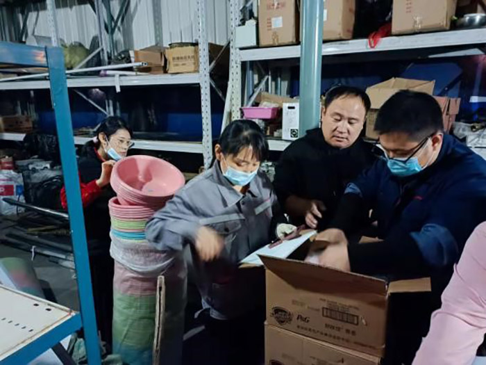 疫情突然来袭,公司第一时间启动疫情防控应急预案,生产调度部作为生产各类物料和生活基本物资存储部门快速进入备战状态。一面沟通生产车间和供应部,确定库存储备量;一面统计各部门驻厂人员,有序为有需要的人员发放生活物资。根据实际情况,公司留下540名干部员工值守,保留了八成的产能,生产调度部部长蒋艳萍统筹安排本部门人员王文芳、庞瑞、唐玉晓、王娟和科员杨文月,准确上报库存数据,协助各车间进行生产安排,及时收、发物资,耐心为二、三厂区各车间、各部门值守人员发放了牙刷、牙膏、洗发膏、香皂、毛巾、洗脸盆、卫生纸、口罩、垫子和被子等生活所需物资,做到账目清楚准确。为两个厂区有序平稳开展生产创造了可能。