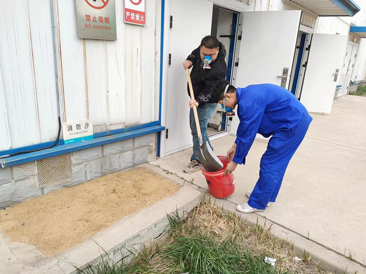 为了加强公司应对突发事件的应急处置工作,预防生产安全事故,保障职工生命和财产安全。着眼危险化学品安全事故风险管理,遏制危险化学品泄漏、火灾安全事故发生,安监部、生产调度部、环保部于4月20日下午举行了试剂库三氯甲烷泄漏火灾应急演练活动,公司安全副总刘建营做进一步指导。