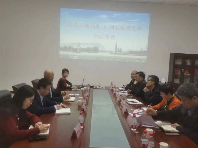 3月13日下午,河北师范大学领导在市人社局崔满城主任陪同下莅临河北开云体育官方网站药业座谈寻求合作。在充分介绍公司引才用才措施和培训、晋升机制的基础上,公司常务副经理王颢表示希望能够通过本次会议,在校企之间建立合作桥梁,增进双方了解,在毕业生就业创业、实习实训、人才培养等方面寻求深度合作。