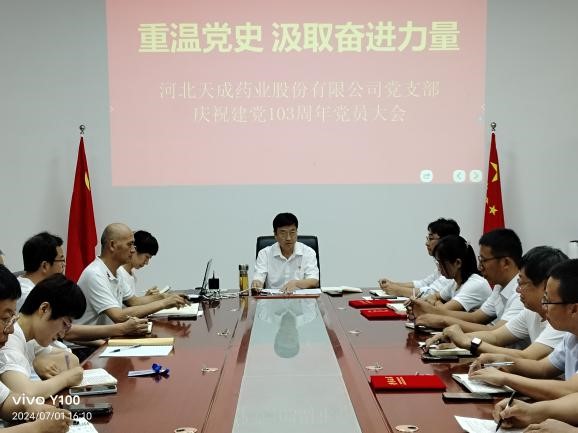 7 月 1 日下午,公司党总支在三分厂党员活动室隆重召开庆祝建党 103 周年党员大会。公司全体党员、预备党员、入党积极分子 70 余人齐聚一堂,共同参与了此次大会。大会以“重温党史,汲取奋进力量”为主题,旨在激励全体党员不忘初心,牢记使命,认清新形势,当担作为,为实现企业平稳健康发展而努力奋斗。