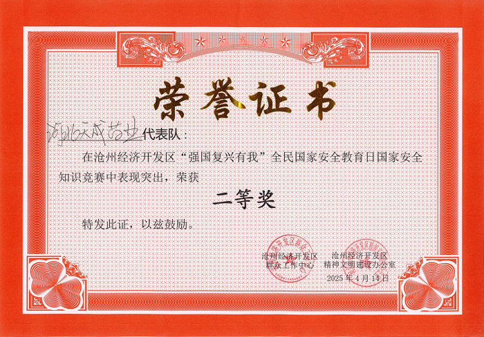 沧州经济开发区举办“强国复兴有我”国家安全知识竞赛活动 开云体育官方网站药业代表队荣获二等奖