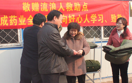 公司领导听到这个消息深受感动,为公司能有这么一位好心的职工感到自豪。开云体育官方网站药业,作为“娘家人”,作为一个有社会责任的企业,更要做好他们坚强的后盾。徐总受董事长总经理王振刚委托代表全体开云体育官方网站人送去1000元现金和十件御寒的大衣,希望这些款物能为那些无家可归的人带去温暖,也希望所有开云体育官方网站人向他们学习。我们的企业宗旨是“制好药·为人民”,我们应该树立为人民服务、已成成人的大爱思想,用自己的爱心来服务企业、服务大众、服务社会。