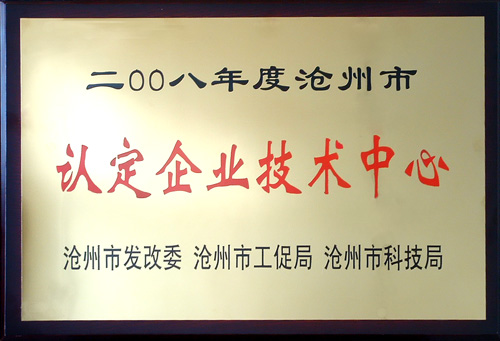 我公司被沧州市发改委、沧州市工促局、沧州市科技局联合认定为2008年度企业技术中心。近日,奖牌下发到公司。这是继我公司被评为“河北省高新技术企业”、“沧州市高新技术先导企业”之后,政府部门再次对我公司多年来一直致力于新技术研发和投入的肯定。这一称号的取得,也会为企业带来一定的政策支持。