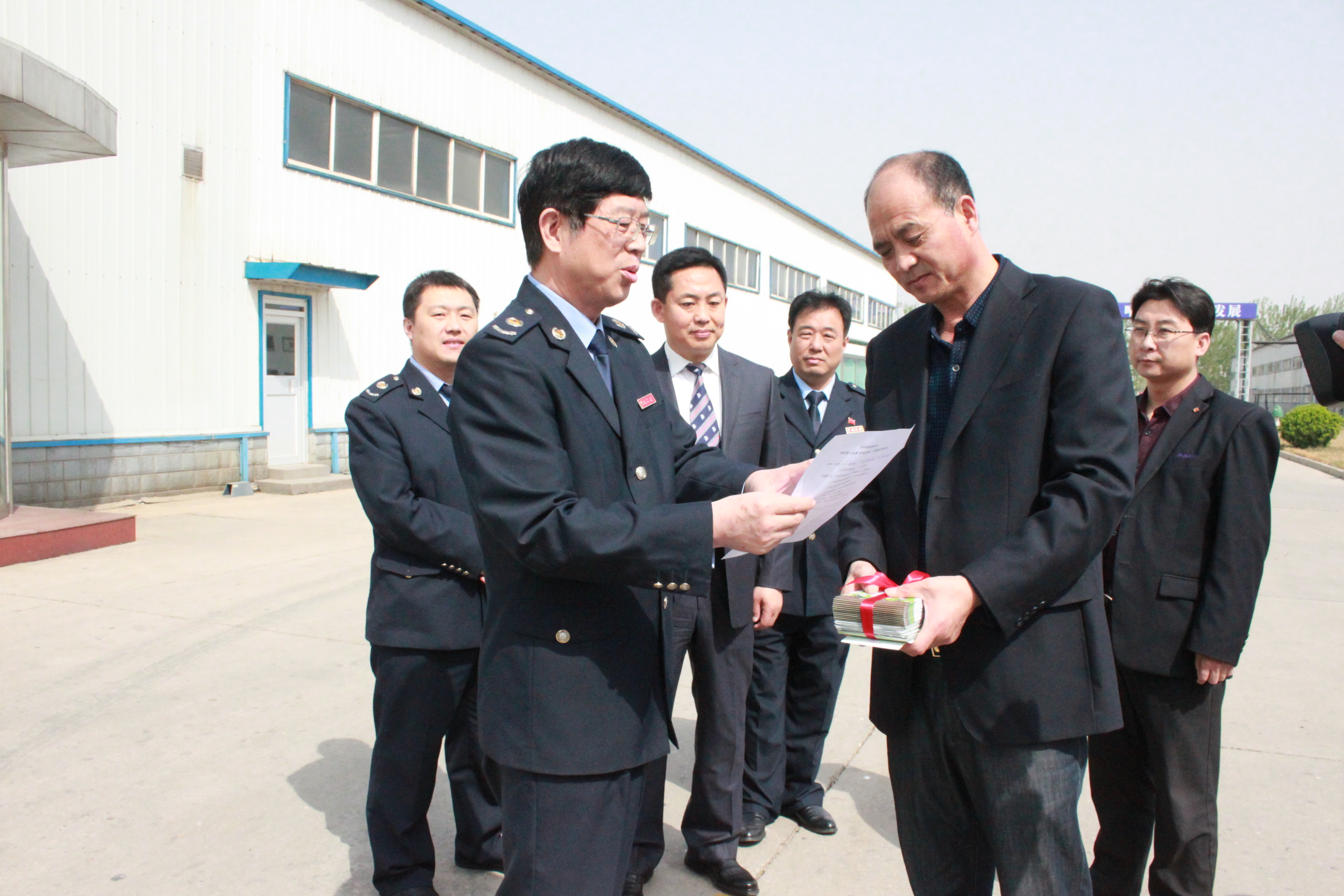 2018年4月12日沧州市国税局联合开发区地税局,借助沧州市“双创双服”服务月活动契机,走进我们企业送政策、送服务,进一步优化税收营商环境。常务副总王颢表示:“感谢沧州市国税局和开发区地税局领导们将涉税的优惠政策送到我们企业,并留下有事您说话的联系卡。我们会利用国家好的政策努力把企业做大做强,更好地回报社会。”