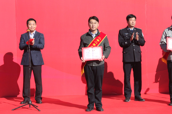 活动现场,公司总经理孙元清和其他四家单位主管安全生产的负责人被授予2020年度“消防之星”荣誉称号,并接受上级领导颁奖。