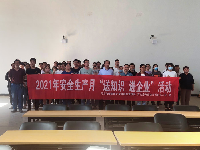 日前,沧州经济开发区应急管理局联合沧州经济开发区总工会启动了送“送知识 进企业”活动。6月17日上午,项目组来到公司三分厂培训室开展活动。沧州经济开发区应急管理局李延科长、沧州经济开发区总工会工作人员贾起新出席活动,沧州渤海专修学院李振涛讲师进行授课。