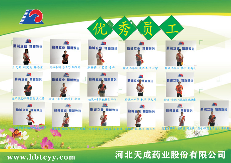 | 8 | 律大蟒 | 输液一车间 | 制袋灌封 | 他虚心学习,不断完善自身技能,提高业务能力,很好的完成本职工作。他不忘帮助身边同事,在岗位上营造了良好的氛围。 | |
