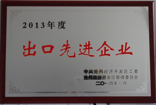 2014年荣获“2013年度出口先进企业” 荣誉称号